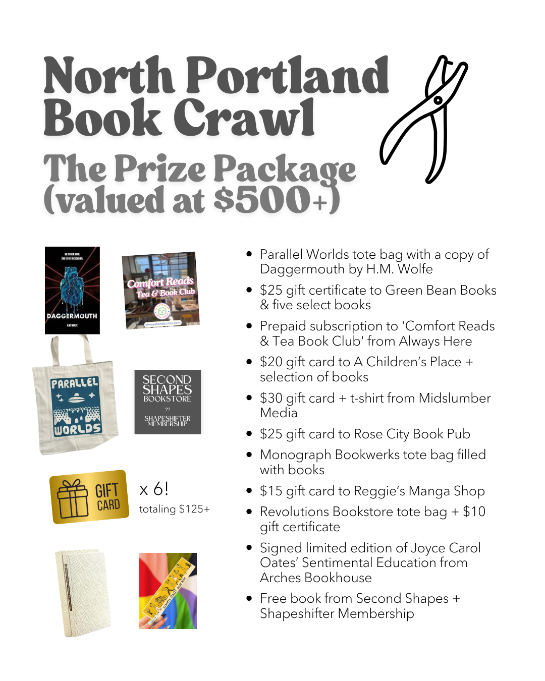 Everyone who participates gets a free used book from Second Shapes! One lucky winner will get an amazing prize package with gifts from all participating shops.